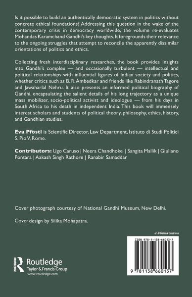 Is it possible to build an authentically democratic system in politics without concrete ethical foundations? Addressing this question in the wake of the contemporary crisis in democracy worldwide, the volume re-evaluates Mohandas Karamchand Gandhi's key thoughts. It foregrounds their relevance to the ongoing struggles that attempt to reconcile the apparently dissimilar orientations of politics and ethics. Collecting fresh interdisciplinary researches, the book provides insights into Gandhi's complex - and occasionally turbulent - intellectual and political relationships with influential figures of Indian society and politics, whether critics such as B. R. Ambedkar and friends like Rabindranath Tagore and Jawaharlal Nehru. It also presents an informed political biography of Gandhi, encapsulating the salient details of his long trajectory as a unique mass mobilizer, socio-political activist and ideologue - from his days in South Africa to his death in independent India. This book will immensely interest scholars and students of political theory, philosophy, ethics, history, and Gandhian studies.