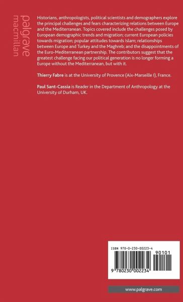 Introduction; T.Fabre & P.Sant Cassia PART 1: THE CHALLENGES OF DEMOGRAPHY AND MIGRATION Demographic Transition in Europe and around the Mediterranean; C.Wilson Does Europe Need New Immigration?; C.Witold de Wenden Putting Asylum to the Test: Between Immigration Policy and Co-Development; S.Mazzella The Mediterranean Divide and its Echo in the Sahara: New Migratory Routes and New Barriers on the Path to the Mediterranean; A.Bensaad PART 2 : THE CHALLENGES OF IDENTITIES AND CULTURES Identity, Nationalism and Anthropologists; M.Couroucli Altering the Perspective; D.Albera Identity Crises and Value Conflicts; A.F.Ansary The Face of the Foreigner: Reflections on the Case of Lebanon's Palestinians; D.Meier PART 3: POLITICAL CHALLENGES Turkish Conservatism: Turkey in Europe or Apart from Europe?; H.Yilmaz Europe in the Mirror of the Mediterranean; K.NicolaIdis & D.NicolaIdis PART 4 : GEOPOLITICAL FEARS AND INSTITUTIONAL RESPONSES Europe, America and the 'Greater' Middle East; M.Bond Expansion Towards the South: An Alternative Scenario for a Partnership in Crisis; J.R.Henry The Euro-Mediterranean Partnership: Reformulating a Process; T.Fabre