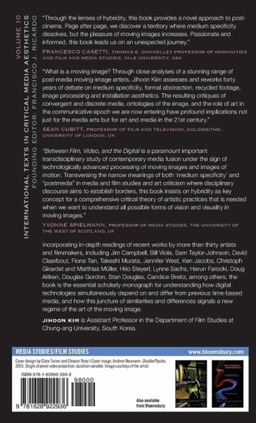 Encompassing experimental film and video, essay film, gallery-based installation art, and digital art, Jihoon Kim establishes the concept of hybrid moving images as an array of impure images shaped by the encounters and negotiations between different media, while also using it to explore various theoretical issues, such as stillness and movement, indexicality, abstraction, materiality, afterlives of the celluloid cinema, archive, memory, apparatus, and the concept of medium as such. Grounding its study in interdisciplinary framework of film studies, media studies, and contemporary art criticism, Between Film, Video, and the Digital offers a fresh insight on the post-media conditions of film and video under the pervasive influences of digital technologies, as well as on the crucial roles of media hybridity in the creative processes of giving birth to the emerging forms of the moving image. Incorporating in-depth readings of recent works by more than thirty artists and filmmakers, including Jim Campbell, Bill Viola, Sam Taylor-Johnson, David Claerbout, Fiona Tan, Takeshi Murata, Jennifer West, Ken Jacobs, Christoph Girardet and Matthias Müller, Hito Steyerl, Lynne Sachs, Harun Farocki, Doug Aitken, Douglas Gordon, Stan Douglas, Candice Breitz, among others, the book is the essential scholarly monograph for understanding how digital technologies simultaneously depend on and differ film previous time-based media, and how this juncture of similarities and differences signals a new regime of the art of the moving image.