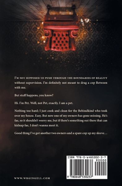 I'm not supposed to push through the boundaries of reality without supervision. I'm definitely not meant to drag a cop Between with me. But stuff happens, you know? Hi. I'm Pet. Well, not Pet, exactly. I am a pet. Nothing too hard; I just cook and clean for the Behindkind who took over my house. Easy. But now one of my owners has gone missing. He's fae, so it shouldn't worry me, but if there's something out there that can kidnap fae, I don't wanna meet it. Good thing I've got another two owners and a spare cop up my sleeve…