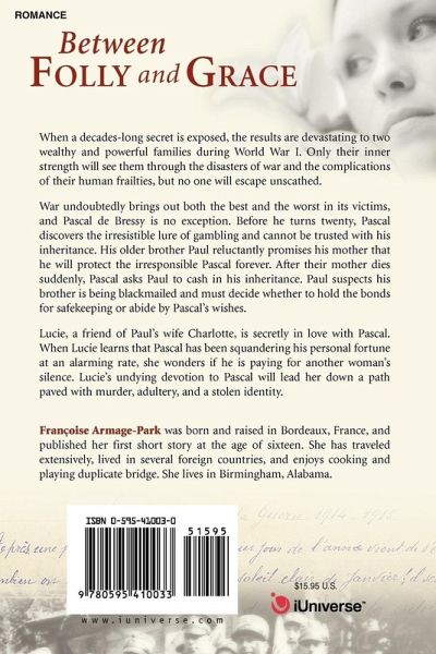 When a decades-long secret is exposed, the results are devastating to two wealthy and powerful families during World War I. Only their inner strength will see them through the disasters of war and the complications of their human frailties, but no one will escape unscathed. War undoubtedly brings out both the best and the worst in its victims, and Pascal de Bressy is no exception. Before he turns twenty, Pascal discovers the irresistible lure of gambling and cannot be trusted with his inheritance. His older brother Paul reluctantly promises his mother that he will protect the irresponsible Pascal forever. After their mother dies suddenly, Pascal asks Paul to cash in his inheritance. Paul suspects his brother is being blackmailed and must decide whether to hold the bonds for safekeeping or abide by Pascal's wishes. Lucie, a friend of Paul's wife Charlotte, is secretly in love with Pascal. When Lucie learns that Pascal has been squandering his personal fortune at an alarming rate, she wonders if he is paying for another woman's silence. Lucie's undying devotion to Pascal will lead her down a path paved with murder, adultery, and a stolen identity.