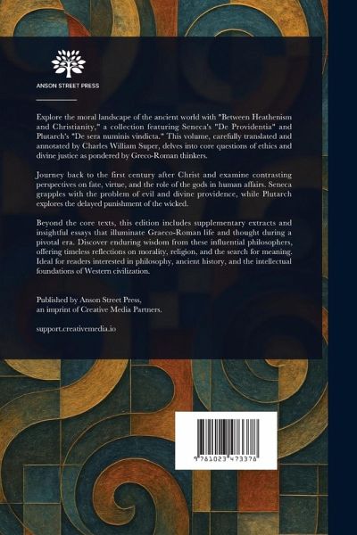 Explore the moral landscape of the ancient world with "Between Heathenism and Christianity," a collection featuring Seneca's "De Providentia" and Plutarch's "De sera numinis vindicta." This volume, carefully translated and annotated by Charles William Super, delves into core questions of ethics and divine justice as pondered by Greco-Roman thinkers. Journey back to the first century after Christ and examine contrasting perspectives on fate, virtue, and the role of the gods in human affairs. Seneca grapples with the problem of evil and divine providence, while Plutarch explores the delayed punishment of the wicked. Beyond the core texts, this edition includes supplementary extracts and insightful essays that illuminate Graeco-Roman life and thought during a pivotal era. Discover enduring wisdom from these influential philosophers, offering timeless reflections on morality, religion, and the search for meaning. Ideal for readers interested in philosophy, ancient history, and the intellectual foundations of Western civilization. This work has been selected by scholars as being culturally important, and is part of the knowledge base of civilization as we know it. This work is in the public domain in the United States of America, and possibly other nations. Within the United States, you may freely copy and distribute this work, as no entity (individual or corporate) has a copyright on the body of the work. Scholars believe, and we concur, that this work is important enough to be preserved, reproduced, and made generally available to the public. We appreciate your support of the preservation process, and thank you for being an important part of keeping this knowledge alive and relevant.