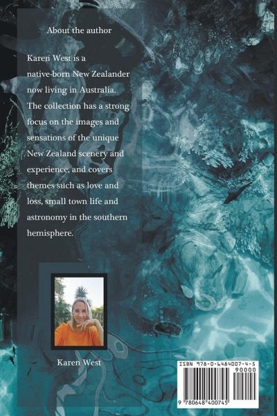 Karen West is a native born New Zealander,and romance novelist under the pseudonym Kate Westwood. After she completed a Masters Degree from Universtity of Auckland at age 42, she moved to Australia with her family. When she is not writing historic romances, playing boogie-woogie and classical piano, and hiking in the beautiful Gold Coast hinterland, you will find her curled up with a cup of hot cocoa, writing and reading poetry, or writing her blog, Girl/Cat/Typewriter. This, her first collection of poems, written while she lived in New Zealand, has a strong focus on the images and sensations of the unique New Zealand scenery and experience, and covers themes such as love and loss, small town life and astronomy in the southern hemisphere.