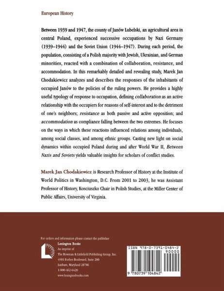 Between 1939 and 1947 the county of Janów Lubelski, an agricultural area in central Poland, experienced successive occupations by Nazi Germany (1939-1944) and the Soviet Union (1944-1947). During each period the population, including the Polish majority and the Jewish, Ukrainian, and German minorities, reacted with a combination of accommodation, collaboration, and resistance. In this remarkably detailed and revealing study, Marek Jan Chodakiewicz analyzes and describes the responses of the inhabitants of occupied Janów to the policies of the ruling powers. He provides a highly useful typology of response to occupation, defining collaboration as an active relationship with the occupiers for reasons of self-interest and to the detriment of one's neighbors; resistance as passive and active opposition; and accommodation as compliance falling between the two extremes. He focuses on the ways in which these reactions influenced relations between individuals, between social classes, and between ethnic groups. Casting new light on social dynamics within occupied Poland during and after World War II, Between Nazis and Soviets yields valuable insight for scholars of conflict studies.