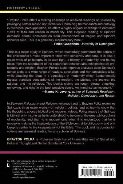 In Between Philosophy and Religion Volumes I and II, Brayton Polka examines Spinoza's three major works—on religion, politics, and ethics—in order to show that his thought is at once biblical and modern. This book and its companion volume are essential reading for any scholar of Spinoza.