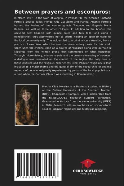 In March 1907, in the town of Alegria, in Palmas-PR, the accused Custodio Ferreira Soares (alias Monge Anjo Custódio) and Manoel Antonio Ferreira burned the bodies of the women Ignácia Trindade and Eogenia Maria Balbina, as well as three other children. In addition to the bonfire, the accused beat Eogenia with quince poles and tatú tails, and using a handkerchief, they asphyxiated her to death, holding an open-air wake for the local community only. The incident led to a criminal case resulting from a practice of exorcism, which became the documentary basis for this work, which uses the criminal case as a source of research along with journalistic clippings from the written press that commented on what happened. Through micro-history, micro-analysis and the cross-referencing of sources, a dialogue was promoted on the context of the region, the daily lives of those involved and the religious experiences lived. Popular religiosity is thus included as a major theme and the general aim of the research is to analyse aspects of popular religiosity experienced by parts of the local population at a time when the Catholic Church was investing in Romanisation.