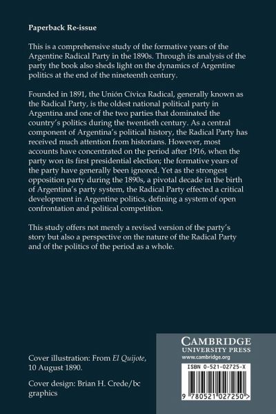 Founded in 1891, the Unió n Cí vica Radical, generally known as the Radical Party, is the oldest national political party in Argentina. As the strongest opposition party during the 1890s, a pivotal decade in the birth of Argentina's party system, the Radical Party effected a critical development in Argentine politics: it created a system of open confrontation and political competition. This study offers not merely a revised version of the party's story but also a new perspective on the politics of the nation as a whole.