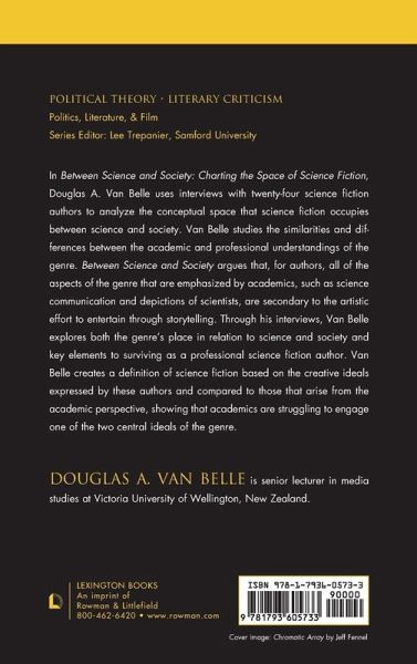 In Between Science and Society: Charting the Space of Science Fiction, Douglas A. Van Belle uses interviews with 24 science fiction authors to analyze the conceptual space that science fiction occupies between science and society. Van Belle studies the similarities and differences between the academic and professional understandings of the genre.
