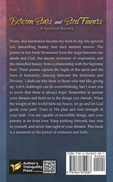 Poetry, along with meditation, became a shovel I used to dig into soil I had ignored for so long... to unearth a beauty that had seemed elusive. There are three places from which the poems in this book bloomed... the first is the angst that comes from the distance between us, our ideals, and God. Prostrated with attempts at 'sanity-maintenance,' I put pen to paper, and one day 'The Way God Speaks' trickled out like a balm. Poetry has a way of speaking to us, of connecting us with some voice deep inside ourselves. The second launching pad for the poems was electricity. In her book, 'Poem Crazy,' Susan Goldsmith Woolbridge writes about how poems live in people, places, and things that have that electrical quality. When you feel that, you know something lovely or potent is waiting to be unearthed. Finding electricity is directly related to the purity and cleanliness of our minds, to our ability to be available to the moment and free of preconceived notions. That's shy innocence, an endless discovery. The third and final origin was a rekindling of beauty and tenderness that grew from a relationship with the Supreme Soul. It was this union that reawakened a lost ability to feel and opened my eyes to potential I once saw as dime-sized doors. These poems are about the heights of the spirit and the low grips of humanness. They are sixty or so dances between the doldrums and Divinity.
