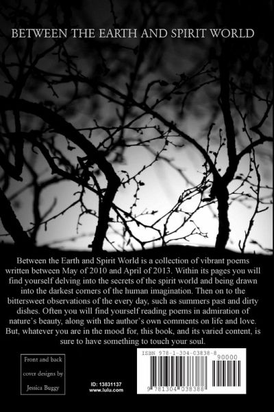 The second edition of Between the Earth and Spirit World is here! With over thirty additional poems, an index, and book title and author name on the spine! Special thanks to my Dad. - Between the Earth and Spirit World is a collection of vibrant poems written between May of 2010 and April of 2013. Within its pages you will find yourself delving into the secrets of the spirit world and being drawn into the darkest corners of the human imagination. Then on to the bittersweet observations of the every day, such as summers past and dirty dishes. Often you will find yourself reading poems in admiration of nature's beauty, along with the author's own comments on life and love. But, whatever you are in the mood for, this book, and its varied content, is sure to have something to touch your soul.