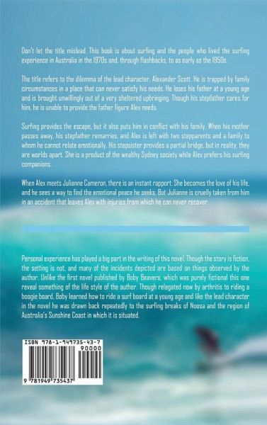 Dont let the title mislead. This book is about surfing and the people who lived the surfing experience in Australia in the 1970s and, through flashbacks, to as early as the 1950s. The title refers to the dilemma of the lead character, Alexander Scott. He is trapped by family circumstances in a place that can never satisfy his needs. He loses his father at a young age and is brought unwillingly out of a very sheltered upbringing. Though his stepfather cares for him, he is unable to provide the father figure Alex needs. Surfing provides the escape, but it also puts him in conflict with his family. When his mother passes away, his stepfather remarries, and Alex is left with two stepparents and a family to whom he cannot relate emotionally. His stepsister provides a partial bridge, but in reality, they are worlds apart. She is a product of the wealthy Sydney society while Alex prefers his surfing companions. When Alex meets Julianne Cameron, there is an instant rapport. She becomes the love of his life, and he sees a way to find the emotional peace he seeks. But Julianne is cruelly taken from him in an accident that leaves Alex with injuries from which he can never recover.