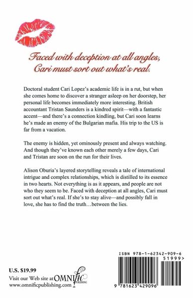 Doctoral student Cari Lopez's academic life is in a rut, but when she comes home to discover a stranger asleep on her doorstep, her personal life becomes immediately more interesting. British accountant Tristan Saunders is a kindred spirit-with a fantastic accent-and there's a connection kindling, but Cari soon learns he's made an enemy of the Bulgarian mafia. His trip to the US is far from a vacation. The enemy is hidden, yet ominously present and always watching. And though they've known each other merely a few days, Cari and Tristan are soon on the run for their lives. Alison Oburia's layered storytelling reveals a tale of international intrigue and complex relationships, which is distilled to its essence in two hearts. Not everything is as it appears, and people are not who they seem to be. Faced with deception at all angles, Cari must sort out what's real. If she's to stay alive-and possibly fall in love, she has to find the truth...between the lies.