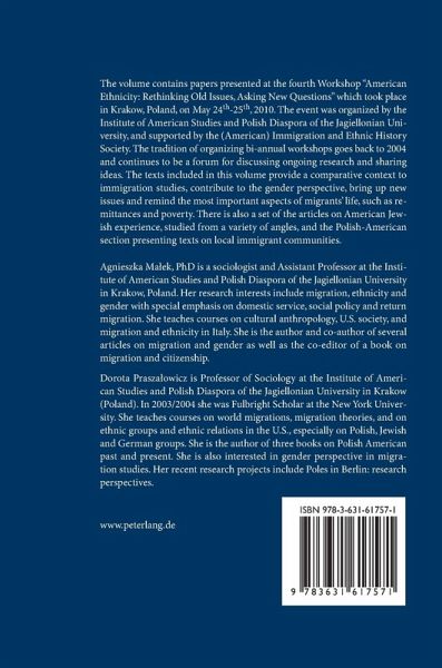The volume contains papers presented at the fourth Workshop «American Ethnicity: Rethinking Old Issues, Asking New Questions» which took place in Krakow, Poland, on May 24th-25th, 2010. The event was organized by the Institute of American Studies and Polish Diaspora of the Jagiellonian University, and supported by the (American) Immigration and Ethnic History Society. The tradition of organizing bi-annual workshops goes back to 2004 and continues to be a forum for discussing ongoing research and sharing ideas. The texts included in this volume provide a comparative context to immigration studies, contribute to the gender perspective, bring up new issues and remind the most important aspects of migrants' life, such as remittances and poverty. There is also a set of the articles on American Jewish experience, studied from a variety of angles, and the Polish-American section presenting texts on local immigrant communities.