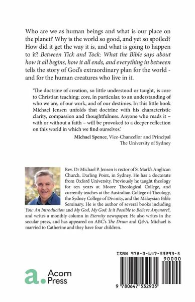 Between Tick and Tock: What the Bible Says About How It All Begins, How It All Ends, and Everything in Between addresses some of the most profound questions that have intrigued humanity for millennia. Who are we as human beings? What is our place on this planet? Why does the world exhibit such a paradoxical nature, being so inherently good yet so evidently flawed? How did the world arrive at its current state, and what does the future hold for it? This book embarks on a comprehensive exploration of these existential queries through the lens of the Bible, presenting a narrative that spans from the inception of the universe to its ultimate culmination. It unfolds the story of God's extraordinary plan for the world and the human beings who inhabit it. By delving into biblical scriptures, the book provides insights into the divine intentions behind creation and the overarching purpose of human life. The book suggests that the goodness of the world is a reflection of God's original design and intention. The beauty and order found in nature, the complexities of life, and the capacity for love and creativity in human beings all point to a benevolent Creator. Yet, it also acknowledges the presence of brokenness and corruption, attributing these to the divergence from divine will and the entrance of sin into the world. This duality of good and spoiled, the book argues, is central to understanding the human condition and the world's current state. Furthermore, Between Tick and Tock explores the biblical narrative of redemption and restoration. It posits that despite the apparent decay and moral decline, there is a divine plan at work aimed at reconciling creation back to its intended glory. In essence, Between Tick and Tock weaves a comprehensive story that not only addresses the origins and destiny of the world but also the significant role human beings play within this grand narrative. It calls readers to understand their place in God's plan, to recognise the inherent value and responsibility bestowed upon them, and to live in a way that aligns with divine purposes. Through this exploration, the book offers profound answers to some of life's most enduring questions, providing a framework for understanding the past, present, and future within a biblical context.