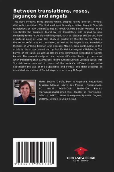 This book contains three articles which, despite having different formats, deal with translation. The first evaluates lexically creative items in Spanish translations of João Guimarães Rosa's novel, Grande Sertão: Veredas, more specifically the solutions found by the translators with regard to non-dictionary terms in the Spanish language, such as yagunzo and sertón, from a cultural point of view. The study is guided by Valentín García Yebra's theoretical reflections on translation, as well as the linguistic and translation theories of Antoine Berman and Georges Mounin. Also contributing to this article is the study carried out by Prof Dr Walnice Nogueira Galvão, in The Forms of the False; as well as Rosa's own testimonies recorded by Günter Lorenz. The second analyses how certain difficulties faced by translators when translating João Guimarães Rosa's Grande Sertão: Veredas (1956) into Spanish were resolved, in terms of the author's different style, more specifically the use of the subjunctive and syntax. The third presents an annotated translation of Daniel Mayer's short story El Ángel.
