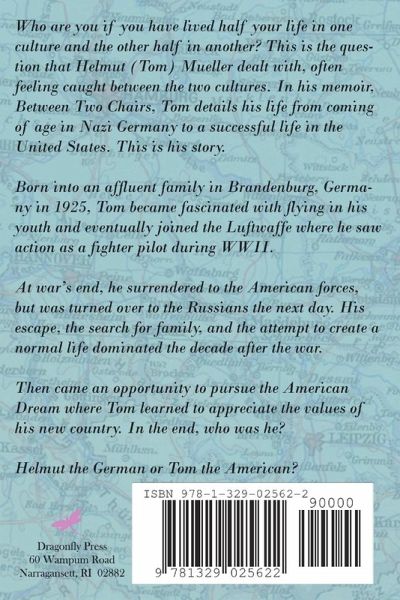Who are you if you have lived half your life in one culture and the other half in another? This is the question that Helmut (Tom) Mueller dealt with, often feeling caught between the two cultures. In his memoir, Between Two Chairs, Tom details his life from coming of age in Nazi Germany to a successful life in the United States. This is his story. Born into an affluent family in Brandenburg, Germany in 1925, Tom became fascinated with flying in his youth and eventually joined the Luftwaffe where he saw action as a fighter pilot during WWII. At war's end, he surrendered to the American forces, but was turned over to the Russians the next day. His escape, the search for family, and the attempt to create a normal life dominated the decade after the war. Then came an opportunity to pursue the American Dream where Tom learned to appreciate the values of his new country. In the end, who was he? Helmut the German or Tom the American?