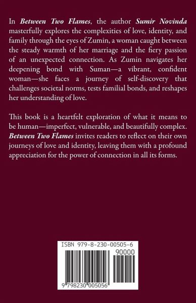 In Between Two Flames, the author Sumir Novinda masterfully explores the complexities of love, identity, and family through the eyes of Zumin, a woman caught between the steady warmth of her marriage and the fiery passion of an unexpected connection. As Zumin navigates her deepening bond with Suman-a vibrant, confident woman-she faces a journey of self-discovery that challenges societal norms, tests familial bonds, and reshapes her understanding of love. This book is a heartfelt exploration of what it means to be human-imperfect, vulnerable, and beautifully complex. Between Two Flames invites readers to reflect on their own journeys of love and identity, leaving them with a profound appreciation for the power of connection in all its forms.