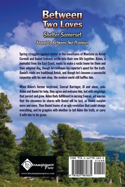 Sequel to Between Two PromisesBetween Two Worlds: Book Three Spring struggles against winter in the mountains of Montana as Aiden Cermak and Daniel Schrock settle into their new life together. Aiden, a journalist from the East Coast, wants to make a rustic home for them and their adopted dog, though he continues his reporter's quest for the truth. Daniel's roots are traditional Amish, and though he's become a successful carpenter with his own shop, the modern world still baffles him. When Aiden's former boyfriend, Conrad Barringer, ill and alone, asks Aiden and Daniel for help, they agree and welcome him, but with misgivings that persist and grow. Aiden finds fulfillment in nursing Conrad, yet worries that the closeness he shares with Daniel will be lost, as Daniel isolates more and more. Then Daniel learns of an ugly revelation that could change everything, and he grapples with whether to tell Aiden the truth, or carry it with him to his grave.