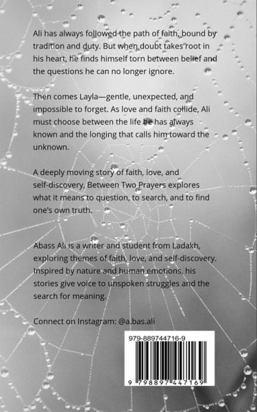 Ali has always followed the path of faith, bound by tradition, duty, and his family's quiet expectations. But when doubt creeps into his heart, he begins to question the certainty he once knew. The prayers that once brought him peace now feel distant, and the weight of expectation grows heavier with each passing day. Then he meets Layla-a girl who stirs something deep within him, something both beautiful and forbidden. As love and faith collide, Ali is forced to confront the impossible choice between the world he has always known and the longing that calls him toward the unknown. Caught between devotion and desire, between the teachings of his past and the whispers of his heart, Ali must find his own truth. But can faith and love coexist, or must one be sacrificed for the other? A poignant and thought-provoking novel, Between Two Prayers is a deeply emotional journey through faith, doubt, love, and self-discovery. It speaks to anyone who has ever questioned, ever loved, and ever stood at a crossroads, searching for the path forward.