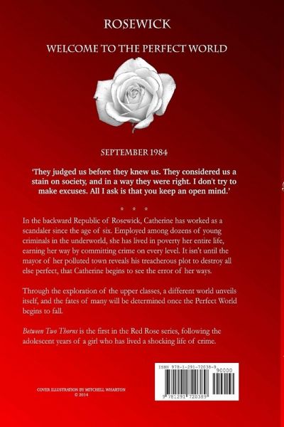September 1984 'They judged us before they knew us. They considered us a stain on society, and in a way they were right. I don't try to make excuses. All I ask is that you keep an open mind.' In the backward Republic of Rosewick, Catherine has worked as a scandaler since the age of six. Employed among dozens of young criminals in the underworld, she has lived in poverty her entire life, earning her way by committing crime on every level. It isn't until the mayor of her polluted town reveals his treacherous plot to destroy all else perfect, that Catherine begins to see the error of her ways. Through the exploration of the upper classes, a different world unveils itself, and the fates of many will be determined once the Perfect World begins to fall. Between Two Thorns is the first in the Red Rose series, following the adolescent years of a girl who has lived a shocking life of crime.