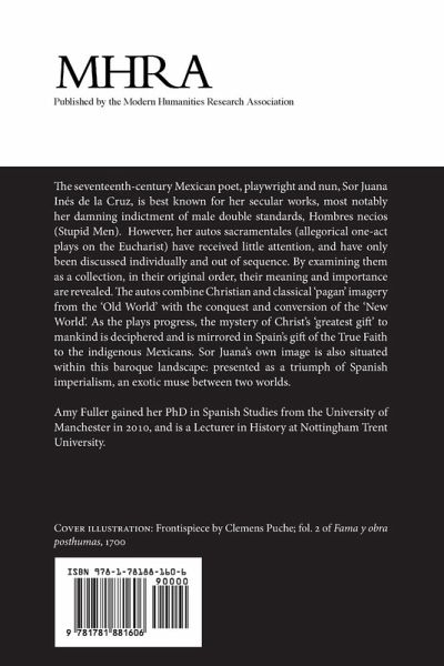 The seventeenth-century Mexican poet, playwright and nun, Sor Juana Inés de la Cruz, is best known for her secular works, most notably her damning indictment of male double standards, Hombres necios (Stupid Men). However, her autos sacramentales (allegorical one-act plays on the Eucharist) have received little attention, and have only been discussed individually and out of sequence. By examining them as a collection, in their original order, their meaning and importance are revealed.