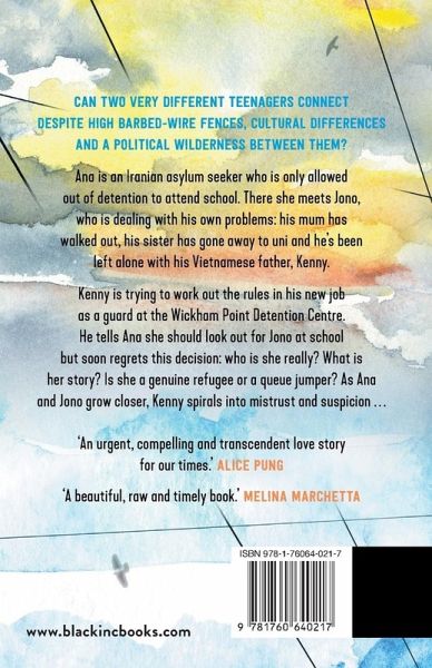 The two teenagers meet at Darwin High School. Anahita travels from Wickham Point to school each day, passing through metal detectors, checkpoints and enduring multiple roll calls on the detention centre bus. Jono has no idea about any of this. All he knows is that there's a beautiful new girl with dark eyes, who keeps looking over in his direction ... is it possible she likes him?