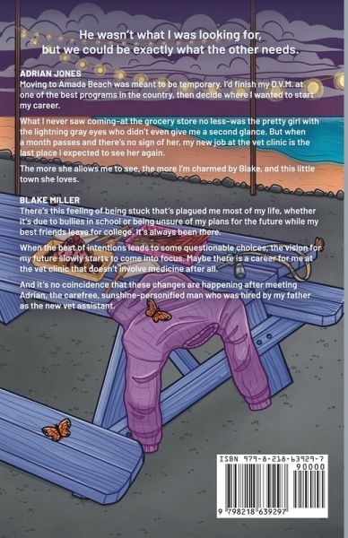 He wasn't what I was looking for, but we could be exactly what the other needs. Adrian Jones Moving to Amada Beach was meant to be temporary. I'd finish my D.V.M. at one of the best programs in the country, then decide where I wanted to start my career. What I never saw coming-at the grocery store no less-was the pretty girl with the lightning gray eyes who didn't even give me a second glance. But when a month passes and there's no sign of her, my new job at the vet clinic is the last place I expected to see her again. The more she allows me to see, the more I'm charmed by Blake, and this little town she loves. Blake Miller There's this feeling of being stuck that's plagued me most of my life, whether it's due to bullies in school or being unsure of my plans for the future. It's always been there. When the best of intentions leads to some questionable choices, the vision for my future slowly starts to come into focus. Maybe there is a career for me at the vet clinic that doesn't involve medicine after all. And it's no coincidence that these changes are happening after meeting Adrian, the carefree, sunshine-personified man who was hired by my father as the new vet assistant. ***BONUS CONTENT INCLUDED***