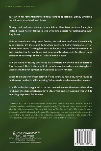 Just when her romantic life was finally starting to settle in, Sidney Sinclair is buried in an emotional meltdown... Sidney tried to dismiss the mysterious Adrian McAllister once and for all, but instead found herself falling in love with him, despite her relationship with Ray Ryker. Now, to complicate things even further, her rock star boyfriend has suddenly gone missing. On the search to find her boyfriend Sidney begins to rely on Adrian even more. Causing her heart to bounce back and forth between the two men leaving her confused and emotionally exhausted. But there is one question that trumps them all "Which world is real?" Is it the world of reality where she has comfortably known and understood Ray for years? Or is it the world of the subconscious where she struggles to understand the eerie presence of Adrian's passion for her? When the murderer of her beloved friend is finally revealed, Ray is found to be the next on the fatal list causing Sidney to choose between the two men. In a life or death struggle with the two men who mean the most to her, she's left having to choose between Ray's life, or the addictive Adrian who will do anything to possess her forever...