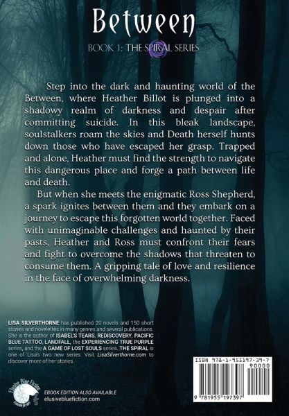 Step into the dark and haunting world of the Between, where Heather Billot is plunged into a shadowy realm of darkness and despair after committing suicide. In this bleak landscape, soulstalkers roam the skies and Death herself hunts down those who have escaped her grasp. Trapped and alone, Heather must find the strength to navigate this dangerous place and forge a path between life and death. But when she meets the enigmatic Ross Shepherd, a spark ignites between them, and they embark on a journey to escape this forgotten world together. Faced with unimaginable challenges and haunted by their pasts, Heather and Ross must confront their fears and fight to overcome the shadows that threaten to consume them. A gripping tale of love and resilience in the face of overwhelming darkness.