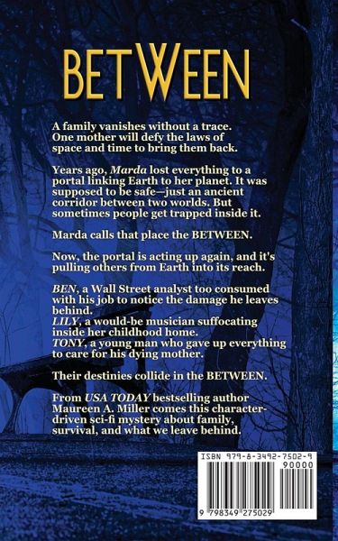 From USA TODAY bestselling author Maureen A. Miller comes an emotional sci-fi mystery. Six years ago, Marda lost her husband and daughters to a portal linking Earth to her planet. It was supposed to be safe-just an ancient corridor between two worlds. But sometimes, people get trapped inside it. Marda calls that place the BETWEEN. Now, the portal is acting up again. People are vanishing from Central Park, right in the heart of one of Earth's busiest cities. Ben-a Wall Street analyst too consumed with his job to notice the damage he leaves behind. Lily-a would-be musician suffocating inside her childhood home. Tony-a young man who gave up everything to care for his dying mother. Their paths collide inside the BETWEEN. But only Marda knows what's waiting there-and she'll risk everything to bring her family home. *This is the first book in a series, but it can be read as a standalone novel. No cliffhangers.*