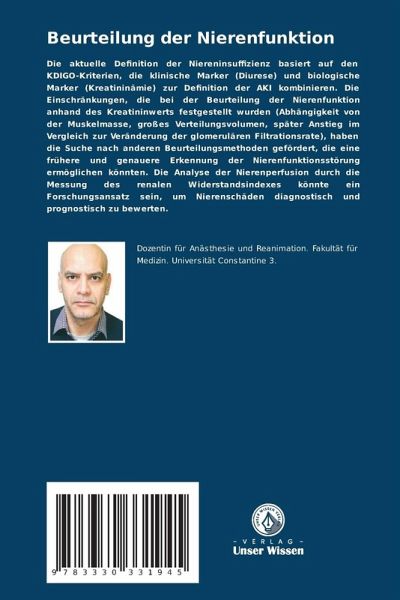 Die aktuelle Definition der Niereninsuffizienz basiert auf den KDIGO-Kriterien, die klinische Marker (Diurese) und biologische Marker (Kreatininämie) zur Definition der AKI kombinieren. Die Einschränkungen, die bei der Beurteilung der Nierenfunktion anhand des Kreatininwerts festgestellt wurden (Abhängigkeit von der Muskelmasse, großes Verteilungsvolumen, später Anstieg im Vergleich zur Veränderung der glomerulären Filtrationsrate), haben die Suche nach anderen Beurteilungsmethoden gefördert, die eine frühere und genauere Erkennung der Nierenfunktionsstörung ermöglichen könnten. Die Analyse der Nierenperfusion durch die Messung des renalen Widerstandsindexes könnte ein Forschungsansatz sein, um Nierenschäden diagnostisch und prognostisch zu bewerten.