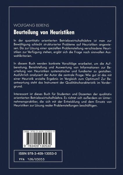 Viele reale betriebswirtschaftliche Entscheidungsprobleme konnen als schlecht-strukturierte Probleme bezeichnet wer den. Zur Bewaltigung dieser Probleme ist man auf Heuristi ken angewiesen. Sie werden z.B. eingesetzt, weil bei - sungsdefekten Problemen kein effizientes, exaktes mathema tisches Verfahren zur Bestimmung einer Optimallosung be kannt ist. Oft stehen dann verschiedene Heuristiken zur Wahl, und es stellt sich die Frage, welche im konkreten Fall besser geeignet ist. Dieses Beurteilungs- und Auswahl problem ist Gegenstand der vorliegenden Schrift, der ersten Monographie zu diesem wichtigen Themengebiet. Ziel des Ver fassers ist es, Vorschlage zur systematischen und fundier ten Sammlung, Aufbereitung und Auswertung von Informationen zur Beurteilung von Heuristiken zu erarbeiten. 1m ersten Kapitel werden Begriff und Einsatzfelder von Heu ristiken verdeutlicht. Das zweite Kapitel beschaftigt sich insbesondere mit einer kritischen Auswertung der bereits vorhandenen Literaturvorschlage zur Beurteilung von Heuri stiken. 1m dritten Kapitel wird die besondere Bedeutung von Heuristiken fur die in der Arbeit betrachteten logistischen Problemstellungen verdeutlicht. Den Schwerpunkt bildet das vierte Kapitel, in dem es urn die Erarbeitung von Beurtei lungskriterien fur Heuristiken geht. Als neues Instrument zur Heuristikbeurteilung stellt der Verfasser die Qualitatscharakteristik vor. An einer Quali tatscharakteristik kann abgelesen werden, mit welcher Wahr scheinlichkeit eine Heuristik bei einer Anwendung auf eine groBere Zahl gleichartiger Probleme eine Losungsqualitat erreicht, die besser ist, als ein vorgegebener Wert.