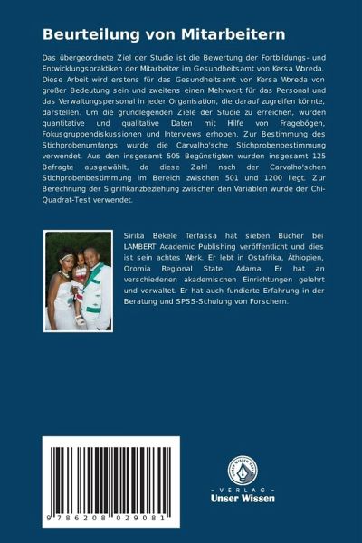 Das übergeordnete Ziel der Studie ist die Bewertung der Fortbildungs- und Entwicklungspraktiken der Mitarbeiter im Gesundheitsamt von Kersa Woreda. Diese Arbeit wird erstens für das Gesundheitsamt von Kersa Woreda von großer Bedeutung sein und zweitens einen Mehrwert für das Personal und das Verwaltungspersonal in jeder Organisation, die darauf zugreifen könnte, darstellen. Um die grundlegenden Ziele der Studie zu erreichen, wurden quantitative und qualitative Daten mit Hilfe von Fragebögen, Fokusgruppendiskussionen und Interviews erhoben. Zur Bestimmung des Stichprobenumfangs wurde die Carvalho'sche Stichprobenbestimmung verwendet. Aus den insgesamt 505 Begünstigten wurden insgesamt 125 Befragte ausgewählt, da diese Zahl nach der Carvalho'schen Stichprobenbestimmung im Bereich zwischen 501 und 1200 liegt. Zur Berechnung der Signifikanzbeziehung zwischen den Variablen wurde der Chi-Quadrat-Test verwendet.