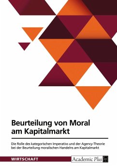 Bachelorarbeit aus dem Jahr 2024 im Fachbereich BWL - Unternehmensethik, Wirtschaftsethik, Note: 1,3, FOM Hochschule für Oekonomie und Management gemeinnützige GmbH, Hochschulstudienzentrum Hamburg, Sprache: Deutsch, Abstract: Die Kernfrage dieser Arbeit ist es, zu durchleuchten, wie Kants philosophisches Konzept des kategorischen Imperativs, das auf universellen moralischen Prinzipien basiert, am Kapitalmarkt hinsichtlich einzelner Entscheidungen und Handlungen Anwendung findet. Besonderes Augenmerk wird in diesem Zusammenhang auf die moralischen Herausforderungen und ethischen Dilemmas gelegt, die sich für die Akteure am Kapitalmarkt ergeben, und wie diese unter Berücksichtigung der Kantischen Ethik interpretiert und vorgebeugt werden können. Parallel dazu wird die Agency-Theorie als ein ökonomisches Konzept herangezogen, welches die Austauschbeziehungen zwischen zwei Wirtschaftssubjekten, dem Prinzipal und dem Agenten, darlegt. Diese Theorie bietet einen Ansatz, um die komplexen Interaktionen am Kapitalmarkt unter der Berücksichtigung des kategorischen Imperativs zu analysieren. Insbesondere findet in diesem Zusammenhang das aufkommende Konfliktpotenzial, das sich durch kollidierende Interessen und Intentionen der einzelnen Marktakteure ergibt, Betrachtung. Das übergeordnete Ziel der Arbeit besteht darin, ein umfassendes Verständnis dafür aufzubauen, ob und inwiefern moralische Prinzipien in die Praxis des Kapitalmarktes integriert werden können. In diesem Zuge erfolgt eine kritische Auseinandersetzung der theoretischen Konzepte hinsichtlich ihrer praktischen Anwendung. Abschließend sollen die theoretischen und praktischen Aspekte der Moral ein allseitiges Verständnis der moralischen Grundsätze am Kapitalmarkt vermitteln.