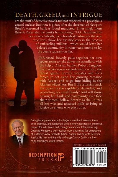 During his experience as a lumberjack, merchant seaman, insurance executive, cattleman, and writer, William Avery acquired an enormous respect for industrious and courageous women. As a child he witnessed his mother run the farm and wield a rifle to put game on the table for her five children. She was his inspiration and, some say, his model for independent women-and that would be all right too. After producing Ouachita Heritage, a well-received work chronicling five generations of his family, Avery turned to fiction, his first love, to write Beverly's Justice. He lives with his wife in Orange County, California. They enjoy traveling to exotic locales, including recent trips to Georgetown; Penang, Malaysia; Singapore; and Phuket Island, Thailand, revisiting places first explored by Avery as a lad.