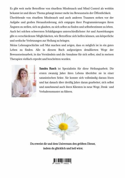 Es gibt weit mehr Betroffene von rituellem Missbrauch und Mind Control als weithin bekannt ist und dieses Thema gelangt immer mehr ins Bewusstsein der Öffentlichkeit.Überlebende von rituellem Missbrauch und auch anderen Traumen stehen vor der Aufgabe und großen Herausforderung, sich entgegen ihrer Programmierungen ihren Ängsten zu stellen, sich zu glauben, zu sich selbst zu finden und selbstbestimmt zu leben.Auch bei solchen schwersten Schädigungen unterschiedlichster Art und Auswirkungen gibt es verschiedenste Möglichkeiten, wie Betroffene sich helfen können, um körperliche und seelische Verletzungen zur Heilung zu bringen.Meine Lebensgeschichte soll Mut machen und zeigen, dass es möglich ist in ein gutes Leben zu finden. Alle in diesem Buch aufgezeigten detaillierten Wege der Bewusstseinsarbeit, in das Verständnis und die Annahme für sich selbst, sind in meinen Therapien vielfach erprobt und beschritten worden.