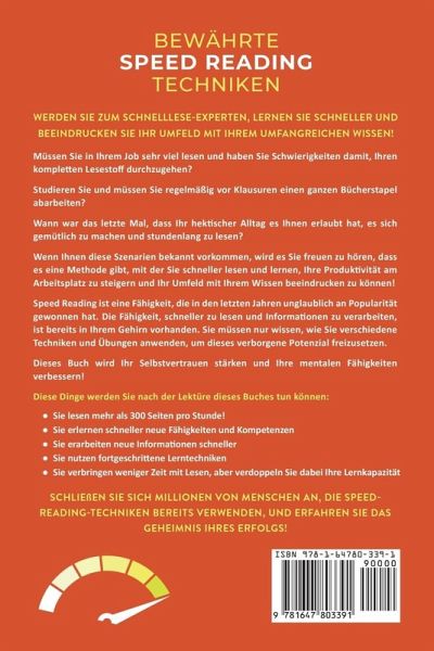Werden Sie zum Schnelllese-Experten, lernen Sie schneller und beeindrucken Sie Ihr Umfeld mit Ihrem umfangreichen Wissen! Müssen Sie in Ihrem Job sehr viel lesen und haben Sie Schwierigkeiten damit, Ihren kompletten Lesestoff durchzugehen? Studieren Sie und müssen Sie regelmäßig vor Klausuren einen ganzen Bücherstapel abarbeiten? Wann war das letzte Mal, dass Ihr hektischer Alltag es Ihnen erlaubt hat, es sich gemütlich zu machen und stundenlang zu lesen? Wenn Ihnen diese Szenarien bekannt vorkommen, wird es Sie freuen zu hören, dass es eine Methode gibt, mit der Sie schneller lesen und lernen, Ihre Produktivität am Arbeitsplatz steigern und Ihr Umfeld mit Ihrem Wissen beeindrucken können! Speed Reading ist eine Fähigkeit, die in den letzten Jahren unglaublich an Popularität gewonnen hat: Mittlerweile nutzen Millionen von Menschen diese Technik, um ihren Fokus und ihre Konzentrationsfähigkeit zu verbessern, ihre Aufnahmefähigkeit und ihre Gedächtnisleistungen zu steigern und natürlich um schneller zu lesen. Die Fähigkeit, schneller zu lesen und Informationen zu verarbeiten, ist bereits in Ihrem Gehirn vorhanden. Sie müssen nur wissen, wie Sie verschiedene Techniken und Übungen anwenden, um dieses verborgene Potenzial freizusetzen. Dieser ultimative Leitfaden zum Thema Schnelllesen wird Sie durch diesen Prozess führen. Ihr Mentor ist John R. Torrance, ein erfolgreicher Produktivitäts-Coach. Anfangs konnte er nur 200 Wörter pro Minute lesen, doch dann schaffte er unglaubliche 1500 Wörter! Dieses Buch wird Ihr Selbstvertrauen stärken und Ihre mentalen Fähigkeiten verbessern! Diese Dinge werden Sie nach der Lektüre dieses Buches tun können:Lesen Sie mehr als 300 Seiten pro Stunde! Reduzieren Sie die Zeit, die Sie derzeit mit Lesen verbringen, um die Hälfte oder mehr! Erlernen Sie schneller neue Fähigkeiten und Kompetenzen Nutzen Sie Übungen und Techniken, um Ihr Gehirn zu trainieren und Ihre verborgenen Fähigkeiten freizulegen Wie Sie Ihre Lesefähigkeiten und -geschwindigkeiten genau berechnen Nutzen Sie Techniken zum Speed-Reading und erzielen Sie unglaubliche Ergebnisse Verstehen Sie, was Sie lesen, und verarbeiten Sie Informationen schneller Verbringen Sie weniger Zeit mit Lesen, aber verdoppeln Sie dabei die Lernkapazität Nutzen Sie fortgeschrittene Lerntechniken Verbessern Sie Ihre Wahrnehmungsfähigkeit und Ihr Gedächtnis Halten Sie Ihren Fokus und Ihre Konzentration für längere Zeit aufrecht Und vieles mehr! Dieser Leitfaden wird auch Schnelllese-Anfänger in kürzester Zeit in eindrucksvolle Intellektuelle verwandeln, doch auch alle fortgeschrittenen Schnelllese-Fans können von diesem Buch enorm profitieren. Dieser Leitfaden wird Sie nicht dazu auffordern, sich stundenlang selbst zu analysieren, wie es viele Bücher zum Thema Speed Reading tun. In diesem Ratgeber erhalten Sie stattdessen eine unkomplizierte Methode, die funktioniert, zahlreiche praktische Übungen, die sich als erfolgreich erwiesen haben, sowie eine nützliche Schritt-für-Schritt-Anleitung, die absolut jeder anwenden kann! Schließen Sie sich Millionen von Menschen an, die Speed-Reading-Techniken bereits verwenden, und erfahren Sie das Geheimnis ihres Erfolgs! Scrollen Sie nach oben, klicken Sie auf "Jetzt kaufen mit 1 Klick" und holen Sie sich jetzt Ihr Exemplar!