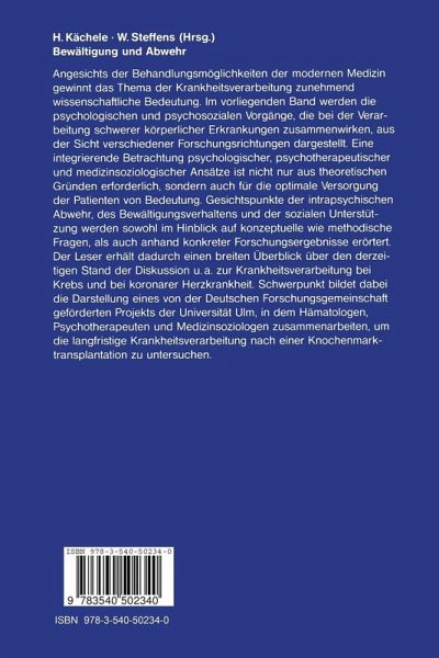 Abwehr und Bewältigung - Mechanismen und Strategien. Wie ist eine Integration möglich?.- Ein dreidimensionales Modell zur Klassifikation von Formen der Krankheitsbewältigung.- Coping als soziales Handeln. Versuch einer soziologischen Ortsbestimmung.- Spezifische und generelle Aspekte der Verarbeitung chronischer Erkrankungen.- Krankheitsverarbeitung bei Krebs.- Bewältigung von Brustkrebs - Eine longitudinale Studie.- Die Bedeutung institutioneller Rahmenbedingungen für individuelle Copingmechanismen am Beispiel der transluminalen Coronarangioplastie.- Problembewältigung im Jugendalter: Ergebnisse von Studien an normalen und besonders belasteten Jugendlichen.- Zur langfristigen Bewältigung der Knochenmarktransplantation - Methode und kasuistische Illustration.
