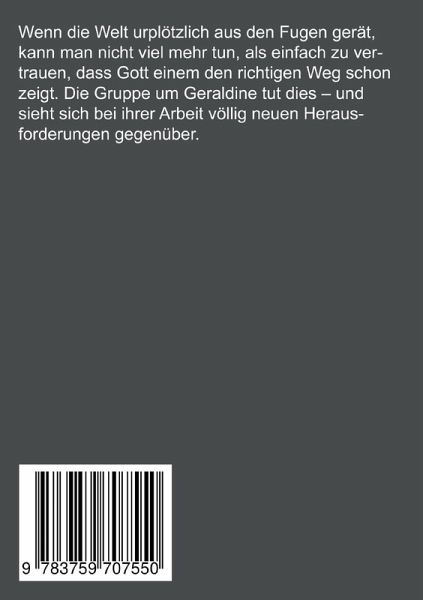 Wenn die Welt urplötzlich aus den Fugen gerät, kann man nicht viel mehr tun, als einfach zu vertrauen, dass Gott einem den richtigen Weg schon zeigt. Die Gruppe um Geraldine tut dies. Und sieht sich bei ihrer Arbeit völlig neuen Herausforderungen gegenüber.