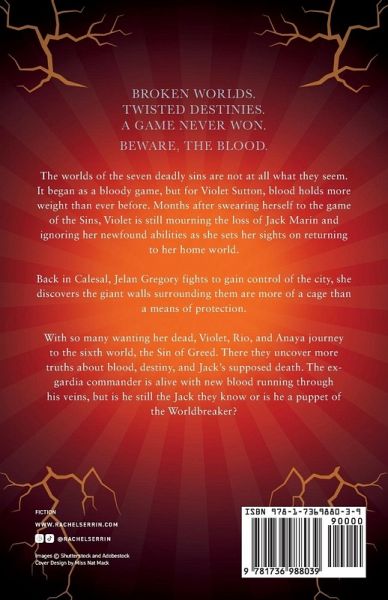 Broken Worlds. Twisted Destinies. A Game Full of Blood. The worlds of the seven deadly sins are not at all what they seem. It began as a bloody game, but for Violet Sutton, blood holds more weight than ever before. Months after swearing herself into the game of the Sins, Violet is still mourning the loss of Jack Marin and ignoring her newfound abilities as she sets her sights on returning to her home world. Back in Calesal, as Jelan Gregory fights to gain control of the city, she discovers the giant walls surrounding them are more of a cage than a means of protection. With so many wanting her dead, Violet, Rio, and Anaya journey to the sixth world, the Sin of Greed. There, they uncover more truths about blood, destiny, and Jack's supposed death. It seems the ex-gardia commander may be alive, with new blood running through his veins, but is he still the Jack they know, or is he a puppet of the Worldbreaker?