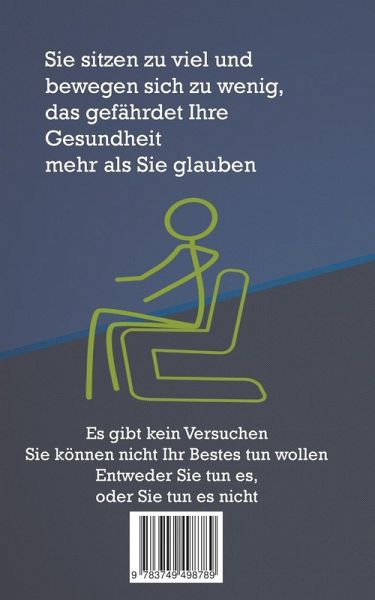 Es ist höchste Zeit, dass wir erkennen, wie wichtig eine ausreichende Bewegung für unsere Gesundheit ist und entsprechend auch handeln müssen. Unsere Gelenke werden unbrauchbar und zerstören sich allmählich selbst, wenn sie nicht richtig bewegt werden. Ebenso verschlechtert sich unser Kreislauf und die Blutgefäße können sich verengen.Unser Körper ist auf Bewegung angewiesen, seine Funktionen sind darauf angelegt. Seit Urzeiten bis ins letzte Jahrhundert gab es keine Probleme.Ausreichende Bewegung ergab sich zwangsläufig aus den Lebensbedingungen.Heute sind wir zu einer Sitzgesellschaft geworden. Dieser erstrebenswerte Fortschritt hat aber seinen Preis. Unsere Lebenshaltung entspricht nicht mehr der integrierten Gebrauchsanweisung unseres Körpers. Wir haben jetzt die Verantwortung, aktiv die entstehenden Defizite an Bewegung auszugleichen.Der Autor bietet in diesem Buch entsprechende Anleitungen.