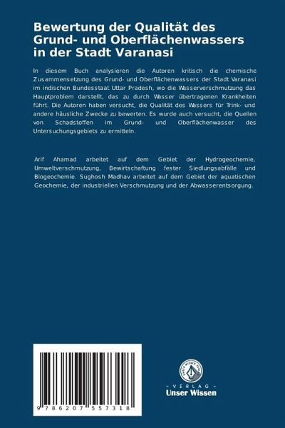 In diesem Buch analysieren die Autoren kritisch die chemische Zusammensetzung des Grund- und Oberflächenwassers der Stadt Varanasi im indischen Bundesstaat Uttar Pradesh, wo die Wasserverschmutzung das Hauptproblem darstellt, das zu durch Wasser übertragenen Krankheiten führt. Die Autoren haben versucht, die Qualität des Wassers für Trink- und andere häusliche Zwecke zu bewerten. Es wurde auch versucht, die Quellen von Schadstoffen im Grund- und Oberflächenwasser des Untersuchungsgebiets zu ermitteln.