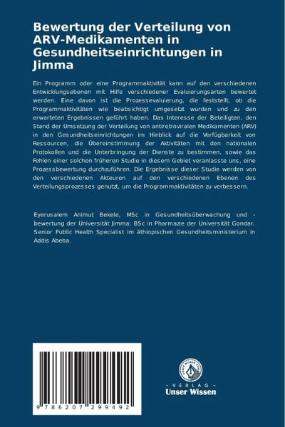 Ein Programm oder eine Programmaktivität kann auf den verschiedenen Entwicklungsebenen mit Hilfe verschiedener Evaluierungsarten bewertet werden. Eine davon ist die Prozessevaluierung, die feststellt, ob die Programmaktivitäten wie beabsichtigt umgesetzt wurden und zu den erwarteten Ergebnissen geführt haben. Das Interesse der Beteiligten, den Stand der Umsetzung der Verteilung von antiretroviralen Medikamenten (ARV) in den Gesundheitseinrichtungen im Hinblick auf die Verfügbarkeit von Ressourcen, die Übereinstimmung der Aktivitäten mit den nationalen Protokollen und die Unterbringung der Dienste zu bestimmen, sowie das Fehlen einer solchen früheren Studie in diesem Gebiet veranlasste uns, eine Prozessbewertung durchzuführen. Die Ergebnisse dieser Studie werden von den verschiedenen Akteuren auf den verschiedenen Ebenen des Verteilungsprozesses genutzt, um die Programmaktivitäten zu verbessern.