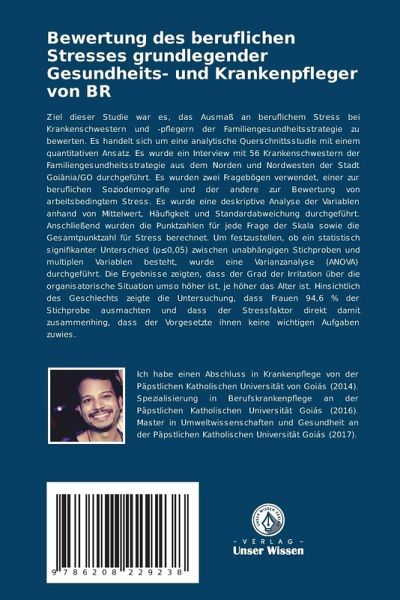 Ziel dieser Studie war es, das Ausmaß an beruflichem Stress bei Krankenschwestern und -pflegern der Familiengesundheitsstrategie zu bewerten. Es handelt sich um eine analytische Querschnittsstudie mit einem quantitativen Ansatz. Es wurde ein Interview mit 56 Krankenschwestern der Familiengesundheitsstrategie aus dem Norden und Nordwesten der Stadt Goiânia/GO durchgeführt. Es wurden zwei Fragebögen verwendet, einer zur beruflichen Soziodemografie und der andere zur Bewertung von arbeitsbedingtem Stress. Es wurde eine deskriptive Analyse der Variablen anhand von Mittelwert, Häufigkeit und Standardabweichung durchgeführt. Anschließend wurden die Punktzahlen für jede Frage der Skala sowie die Gesamtpunktzahl für Stress berechnet. Um festzustellen, ob ein statistisch signifikanter Unterschied (p 0,05) zwischen unabhängigen Stichproben und multiplen Variablen besteht, wurde eine Varianzanalyse (ANOVA) durchgeführt. Die Ergebnisse zeigten, dass der Grad der Irritation über die organisatorische Situation umso höher ist, je höher das Alter ist. Hinsichtlich des Geschlechts zeigte die Untersuchung, dass Frauen 94,6 % der Stichprobe ausmachten und dass der Stressfaktor direkt damit zusammenhing, dass der Vorgesetzte ihnen keine wichtigen Aufgaben zuwies.