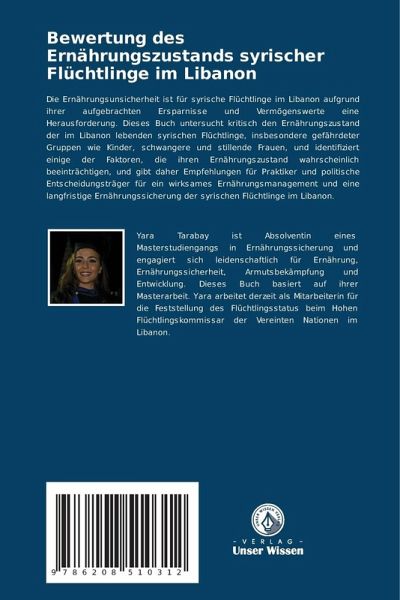 Die Ernährungsunsicherheit ist für syrische Flüchtlinge im Libanon aufgrund ihrer aufgebrachten Ersparnisse und Vermögenswerte eine Herausforderung. Dieses Buch untersucht kritisch den Ernährungszustand der im Libanon lebenden syrischen Flüchtlinge, insbesondere gefährdeter Gruppen wie Kinder, schwangere und stillende Frauen, und identifiziert einige der Faktoren, die ihren Ernährungszustand wahrscheinlich beeinträchtigen, und gibt daher Empfehlungen für Praktiker und politische Entscheidungsträger für ein wirksames Ernährungsmanagement und eine langfristige Ernährungssicherung der syrischen Flüchtlinge im Libanon.