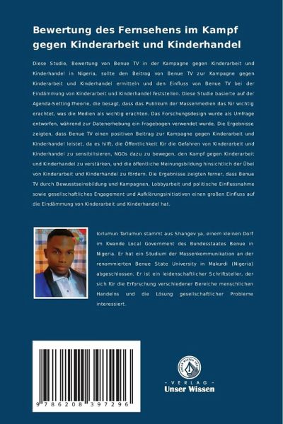 Diese Studie, Bewertung von Benue TV in der Kampagne gegen Kinderarbeit und Kinderhandel in Nigeria, sollte den Beitrag von Benue TV zur Kampagne gegen Kinderarbeit und Kinderhandel ermitteln und den Einfluss von Benue TV bei der Eindämmung von Kinderarbeit und Kinderhandel feststellen. Diese Studie basierte auf der Agenda-Setting-Theorie, die besagt, dass das Publikum der Massenmedien das für wichtig erachtet, was die Medien als wichtig erachten. Das Forschungsdesign wurde als Umfrage entworfen, während zur Datenerhebung ein Fragebogen verwendet wurde. Die Ergebnisse zeigten, dass Benue TV einen positiven Beitrag zur Kampagne gegen Kinderarbeit und Kinderhandel leistet, da es hilft, die Öffentlichkeit für die Gefahren von Kinderarbeit und Kinderhandel zu sensibilisieren, NGOs dazu zu bewegen, den Kampf gegen Kinderarbeit und Kinderhandel zu verstärken, und die öffentliche Meinungsbildung hinsichtlich der Übel von Kinderarbeit und Kinderhandel zu fördern. Die Ergebnisse zeigten ferner, dass Benue TV durch Bewusstseinsbildung und Kampagnen, Lobbyarbeit und politische Einflussnahme sowie gesellschaftliches Engagement und Aufklärungsinitiativen einen großen Einfluss auf die Eindämmung von Kinderarbeit und Kinderhandel hat.
