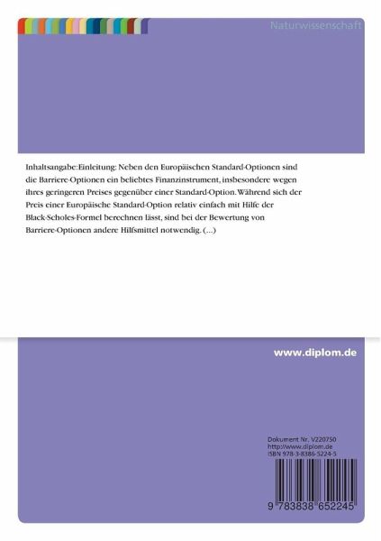 Neben den Europäischen Standard-Optionen sind die Barriere-Optionen ein beliebtes Finanzinstrument, insbesondere wegen ihres geringeren Preises gegenüber einer Standard-Option. Während sich der Preis einer Europäische Standard-Option relativ einfach mit Hilfe der Black-Scholes-Formel berechnen lässt, sind bei der Bewertung von Barriere-Optionen andere Hilfsmittel notwendig.