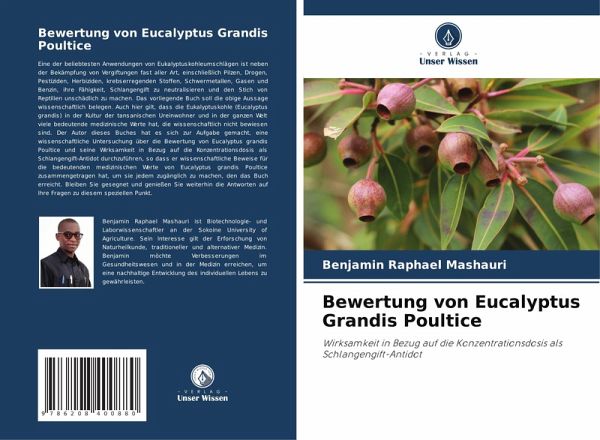 Eine der beliebtesten Anwendungen von Eukalyptuskohleumschlägen ist neben der Bekämpfung von Vergiftungen fast aller Art, einschließlich Pilzen, Drogen, Pestiziden, Herbiziden, krebserregenden Stoffen, Schwermetallen, Gasen und Benzin, ihre Fähigkeit, Schlangengift zu neutralisieren und den Stich von Reptilien unschädlich zu machen. Das vorliegende Buch soll die obige Aussage wissenschaftlich belegen. Auch hier gilt, dass die Eukalyptuskohle (Eucalyptus grandis) in der Kultur der tansanischen Ureinwohner und in der ganzen Welt viele bedeutende medizinische Werte hat, die wissenschaftlich nicht bewiesen sind. Der Autor dieses Buches hat es sich zur Aufgabe gemacht, eine wissenschaftliche Untersuchung über die Bewertung von Eucalyptus grandis Poultice und seine Wirksamkeit in Bezug auf die Konzentrationsdosis als Schlangengift-Antidot durchzuführen, so dass er wissenschaftliche Beweise für die bedeutenden medizinischen Werte von Eucalyptus grandis Poultice zusammengetragen hat, um sie jedem zugänglich zu machen, den das Buch erreicht. Bleiben Sie gesegnet und genießen Sie weiterhin die Antworten auf Ihre Fragen zu diesem speziellen Punkt.