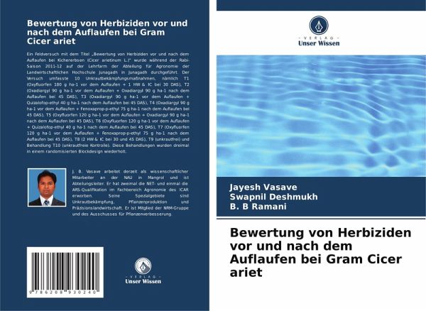 Ein Feldversuch mit dem Titel "Bewertung von Herbiziden vor und nach dem Auflaufen bei Kichererbsen (Cicer arietinum L.)" wurde während der Rabi-Saison 2011-12 auf der Lehrfarm der Abteilung für Agronomie der Landwirtschaftlichen Hochschule Junagadh in Junagadh durchgeführt. Der Versuch umfasste 10 Unkrautbekämpfungsmaßnahmen, nämlich T1 (Oxyfluorfen 180 g ha-1 vor dem Auflaufen + 1 HW & IC bei 30 DAS), T2 (Oxadiargyl 90 g ha-1 vor dem Auflaufen + Oxadiargyl 90 g ha-1 nach dem Auflaufen bei 45 DAS), T3 (Oxadiargyl 90 g ha-1 vor dem Auflaufen + Quizalofop-ethyl 40 g ha-1 nach dem Auflaufen bei 45 DAS), T4 (Oxadiargyl 90 g ha-1 vor dem Auflaufen + Fenoxaprop-p-ethyl 75 g ha-1 nach dem Auflaufen bei 45 DAS), T5 (Oxyfluorfen 120 g ha-1 vor dem Auflaufen + Oxadiargyl 90 g ha-1 nach dem Auflaufen bei 45 DAS), T6 (Oxyfluorfen 120 g ha-1 vor dem Auflaufen + Quizalofop-ethyl 40 g ha-1 nach dem Auflaufen bei 45 DAS), T7 (Oxyfluorfen 120 g ha-1 vor dem Auflaufen + Fenoxaprop-p-ethyl 75 g ha-1 nach dem Auflaufen bei 45 DAS), T8 (2 HW & IC bei 30 und 45 DAS), T9 (unkrautfrei) und Behandlung T10 (unkrautfreie Kontrolle). Diese Behandlungen wurden dreimal in einem randomisierten Blockdesign wiederholt.