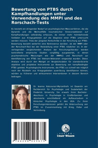 Es besteht ein dringender Bedarf an psychologischen Messverfahren, die die Dynamik und die Wechselfälle traumatischer Stressreaktionen auf Kampfhandlungen vollständig erfassen, da immer mehr heimkehrende Soldaten aus Kriegsgebieten auf die Diagnose einer PTBS untersucht werden müssen. Trotz der jüngsten Fortschritte in der Forschung zur PTBS-Bewertung besteht weiterhin eine Kontroverse darüber, ob der MMPI oder der Rorschach-Test bei der Feststellung einer PTBS nützlicher ist. In der vorliegenden vergleichenden Analyse der Forschungsliteratur werden kontrollierte empirische Studien sorgfältig ausgewertet, in denen psychometrische Messungen wie der MMPI/2 und Rorschach zur Identifizierung von PTBS bei Vietnam-Veteranen eingesetzt wurden. Diese Analyse wird durch den Mangel an Vergleichsdaten für standardisierte objektive und projektive Instrumente zur Bewertung von kampfbedingter PTBS geleitet. Psychologische Instrumente, die PTBS so schnell wie möglich nach der Rückkehr aus Kriegsgebieten zuverlässig identifizieren können, würden zu früheren und wirksameren Interventionen in diesem Bereich beitragen.